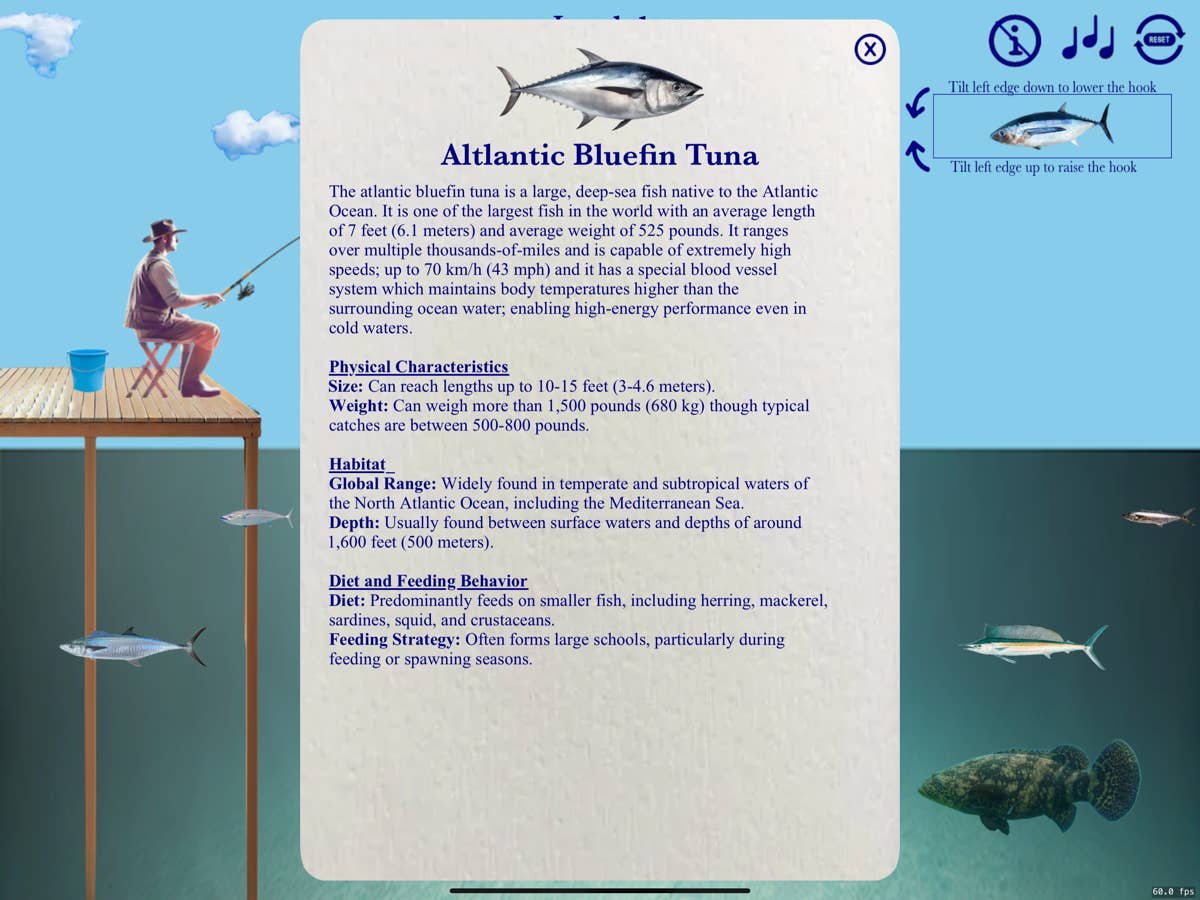 Tilt the device to catch fish. Five levels where each level is more difficult than the previous.